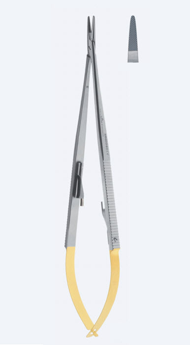 Голкотримач "Power TC" Castroviejo, довжина 180мм, прямий, зазубрена робоча поверхня, для ниток 5/0-7/0, із замком MN0040