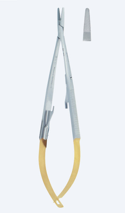 Голкотримач – це хірургічний інструмент, яким користуються хірурги на завершальному етапі операції при зшиванні шовним матеріалом країв розсічення, тканин, сухожиль, органів. Цей інструмент є одним із головних інструментаріїв в операційному наборі. На фіксуючих кінцях браншей, робочої області тримача фіксується хірургічна голка, щодо маніпуляцій. Залежно від розміру голки та майбутньої операції використовують різні види голкотримачів, з різними насічками, ретельно підбирається довжина голкотримача і за яким автором він зроблений. Головним чином використовують його, щоб унеможливити зіткнення рук з тканинами при зшиванні.