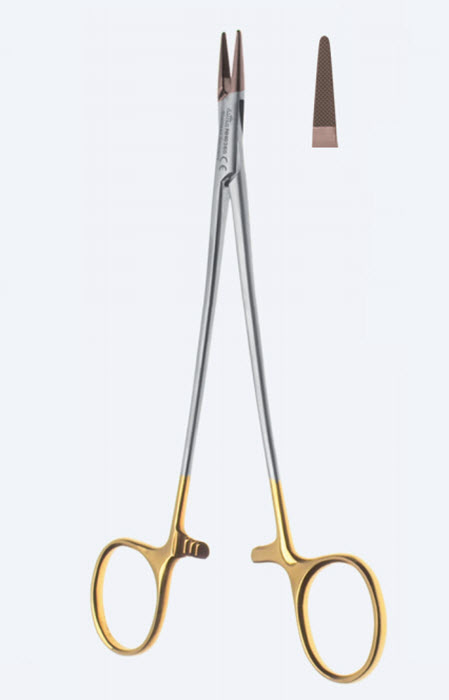 Голкотримач "Titanit" "Power TC" DeBakey, довжина 165мм, прямий, дуже делікатний, зазубрена робоча поверхня, кінчик 0,4мм, для ниток 4/0-6/0 NH0360T