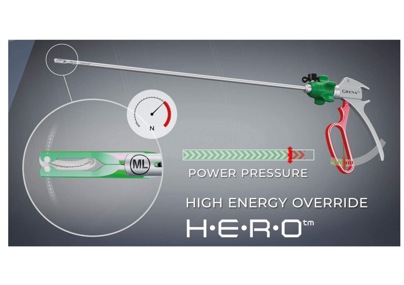 Система H-E-R-O™ запобігає передачі надмірного зусилля на щелепи затискачів, захищаючи тканини і пристрій. H-E-R-O™ розшифровується як Перевизначення Високої Енергії (High Energy Override).