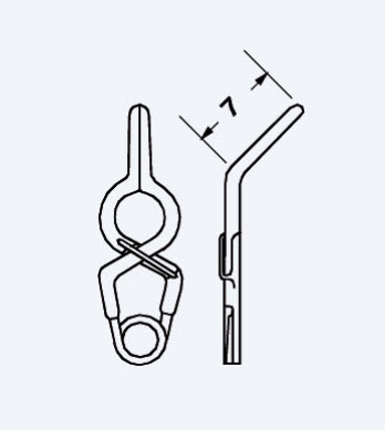 Кліпса (затискач, клема) судинна тимчасова Yasargil, титанова, довжина 7мм, вигнута під кутом 45°, максимальне відкриття 6,5мм, сила тиску 110г / 1,08N YA1019T
