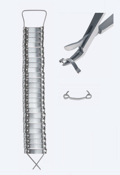 Кліпса (затискач, клема) - це хірургічний інструмент, який можна використовувати для закриття ран та видалення після завершення загоєння, або їх можна використовувати тимчасовіше як частина процедури для зупинки кровотоку. Інструменти класифікуються за автором, сферою застосування, матеріалом, розмірами, тиском, іншими особливостями. Під час проведення хірургічних маніпуляцій скоби кліпси з нержавіючої сталі забезпечують швидкий спосіб закриття рани та знижують ризик інфікувати її. Зшивання не впливає на захисні властивості тканин, тому що вимагає мінімального проникнення в шкіру і, таким чином, менша кількість мікроорганізмів переноситься в нижні шари шкіри. Скоби дорожчі за традиційний шовний матеріал, а також вимагають особливої обережності при розміщенні, особливо при забезпеченні закриття країв рани.
