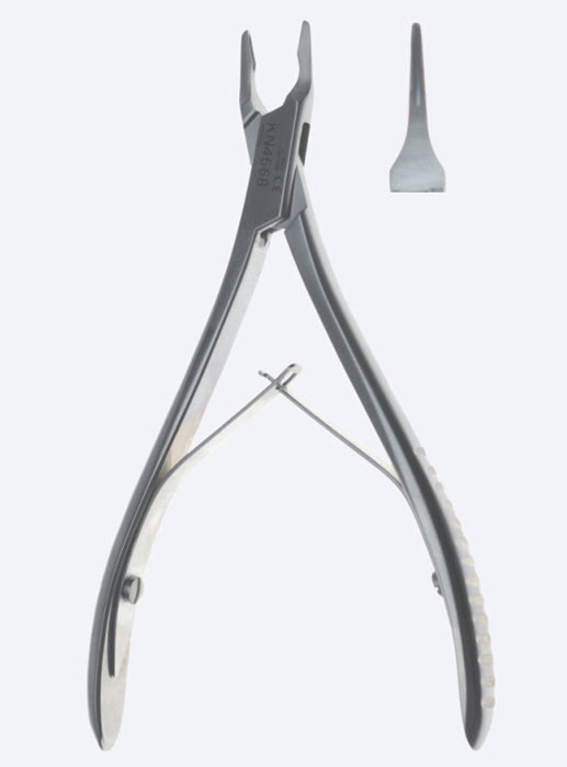 Шматочки ронжири кісткові - хірургічний медичний інструмент, що широко використовується в багатьох напрямках медицини та хірургії. Основна характерна риса даного інструменту - наявність гострої і міцної ріжучої кромки, робочої частини, яка забезпечує плавне і акуратне відкушування кісткового матеріалу. Шматочки (ронжири, щипці) є багаторазовим інструментом, тому для забезпечення тривалого терміну експлуатації при виготовленні використовується нержавіюча сталь. Враховуючи щільність кістки, кусачки також повинні мати максимально надійну та стійку конструкцію, що дозволяє прикладати максимум зусиль під час перекушування. Медичний інструмент, що входить до стандартного хірургічного набору, має плавний хід за рахунок особливої конструкції, завдяки чому забезпечується надійне захоплення кістки. Кісткові кусачки (ронжири) використовуються в хірургії для розсічення кістки, обробці опила кістки, видалення невеликих кісткових виступів, формування отворів при трепанації стінок порожнини.