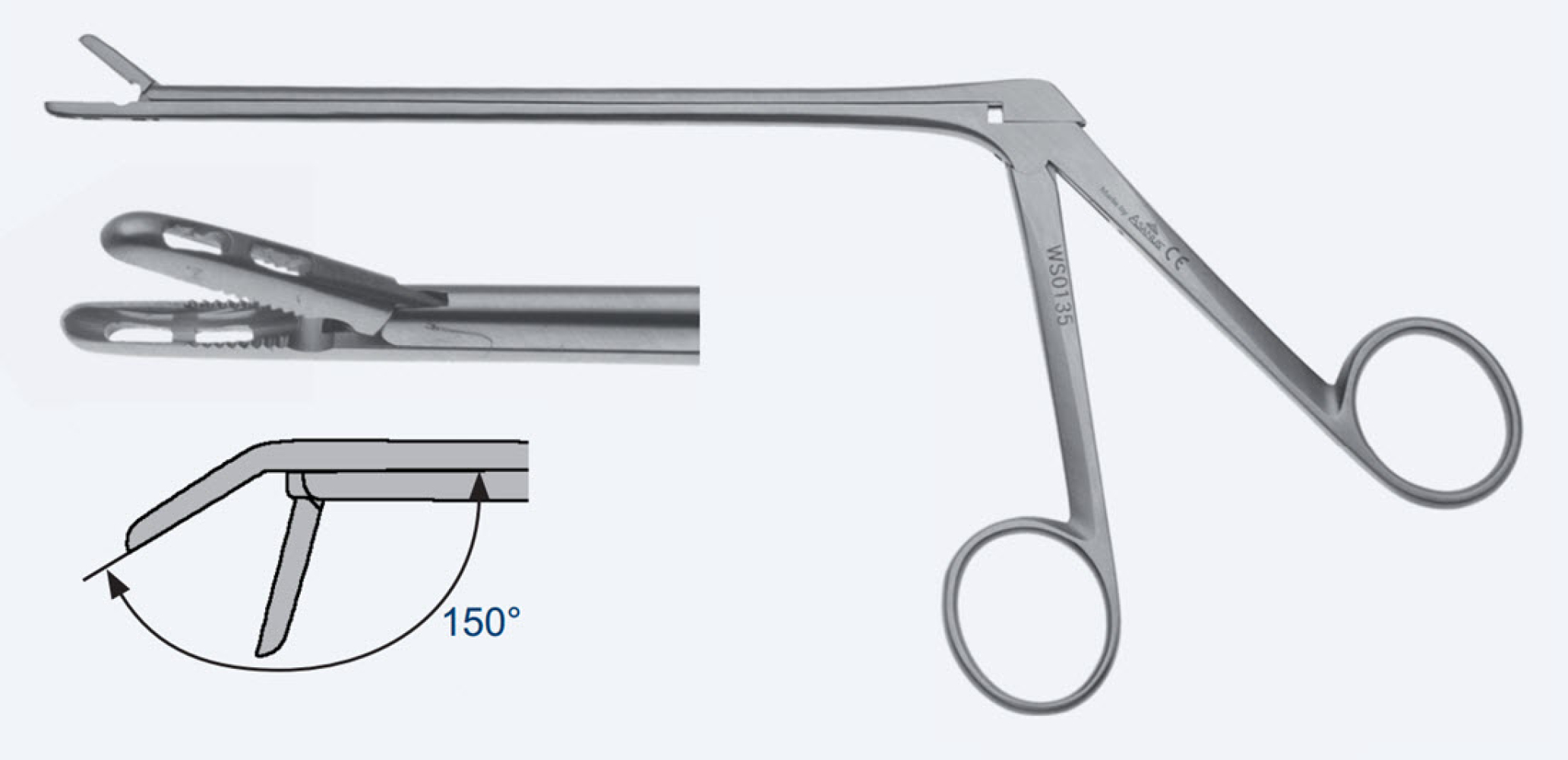 Шматочки (ронжири) кісткові хірургічні Caspar, робоча довжина 140мм, вигнуті вниз під кутом 150°, порожнина 14,0х4,0мм WS0130