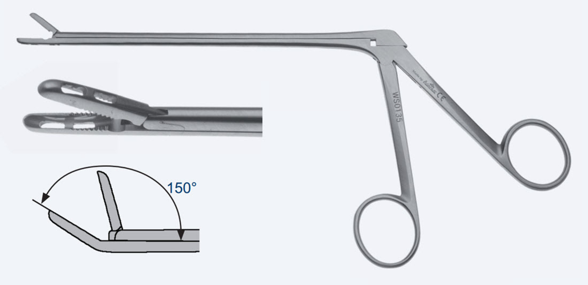 Шматочки (ронжири) кісткові хірургічні Caspar, робоча довжина 160мм, вигнуті вгору під кутом 150°, порожнина 14,0х5,0мм WS0170