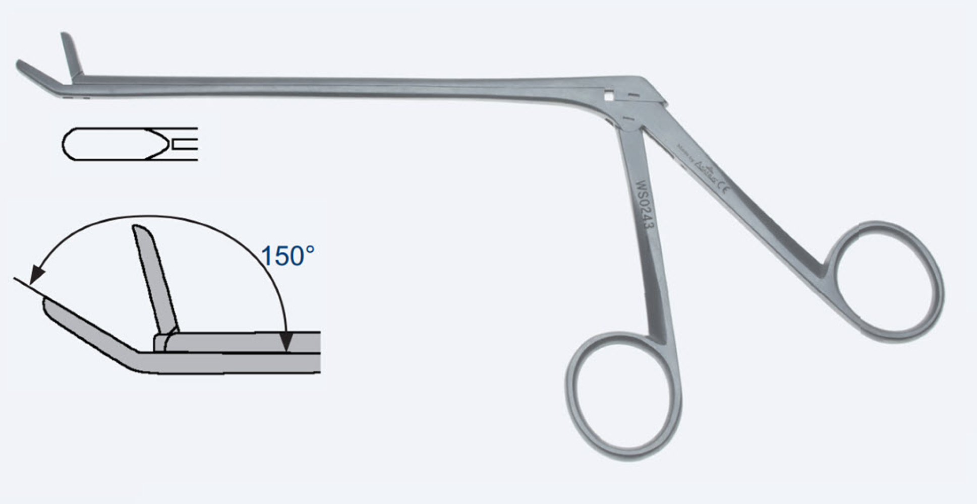 Шматочки (ронжири) кісткові хірургічні Caspar, робоча довжина 155мм, вигнуті вгору під кутом 150°, порожнина 13,0х4,0мм WS0244