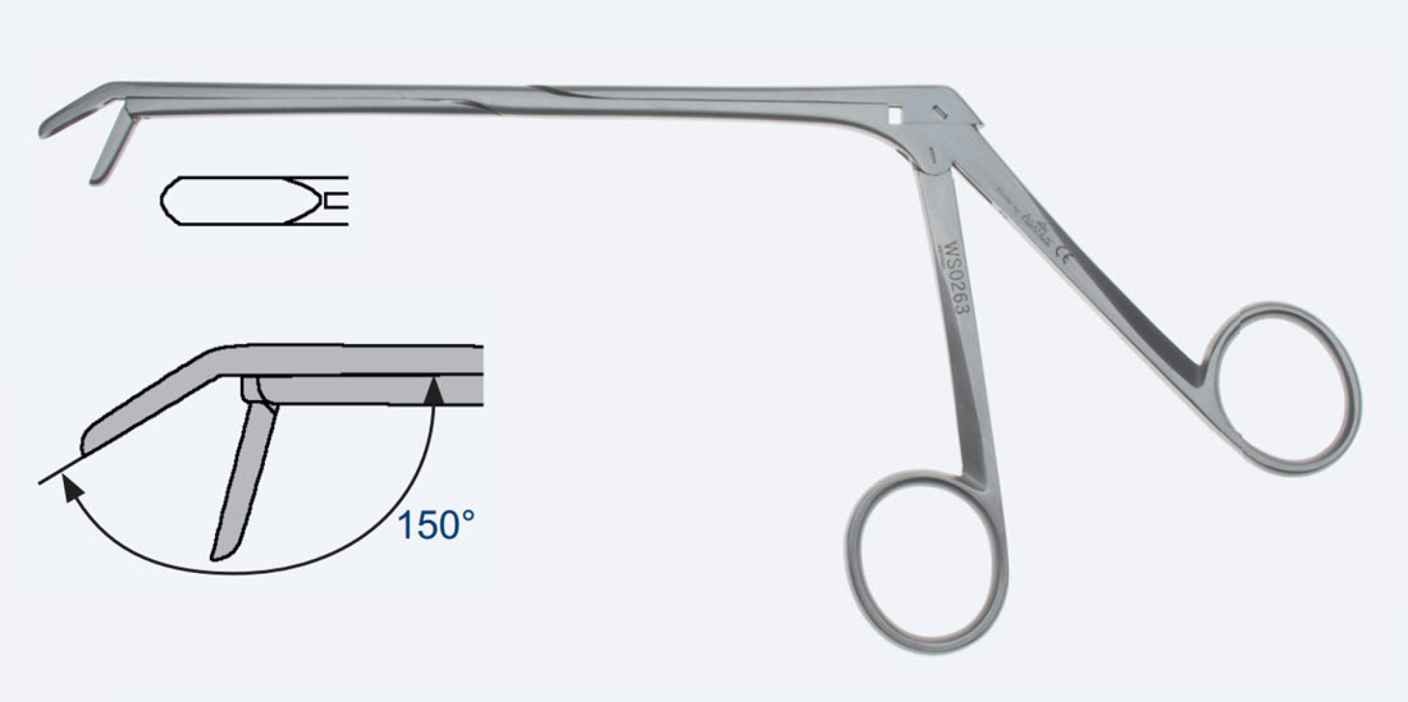 Шматочки (ронжири) кісткові хірургічні Caspar, робоча довжина 155мм, вигнуті вниз під кутом 150°, порожнина 13,0х4,0мм WS0264