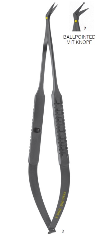 Мікроножиці судинні "Ceramo", "Plano", плоска ручка, довжина 250мм, вигнуті по ребру 45°, гострі, довжина леза 10,0мм. Виробник Fehling Instruments (Germany).