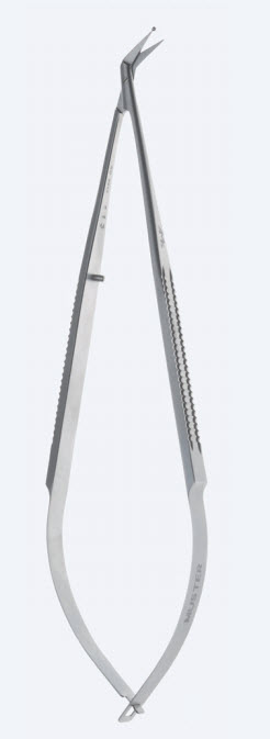 Мікроножиці коронарні, довжина 165мм, вигнуті по ребру 25°, гострокінцеві з кулястим наконечником, довжина леза 10,0мм SC0134