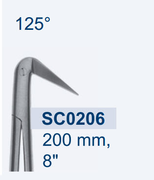Мікроножиці коронарні, довжина 205мм, вигнуті по ребру 125°, гострі, довжина леза 10,0мм SC0206