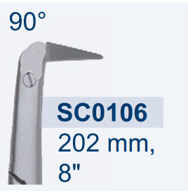 Мікроножиці коронарні "Slim Line", довжина 204мм, вигнуті по ребру 90°, довжина леза 7,0мм SC0106