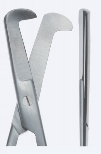 Хірургічні ножиці - це ріжучі інструменти, що складаються з двох лез центрованих по центру. Леза закриваються і матеріал розрізається при змиканні вигнутих кілець на рукояті, куди вставляються пальці. Ножиці є незамінними інструментами при провидінні будь-якої операції, а також зняття пов'язки, зняття швів, гіпсу. У ріжучій тканині кращим методом є утримування лопатей у щільно закритому положенні та підштовхування інструменту вздовж тканини. Ножиці для пуповини використовуються у гінекології для акуратного та правильного надрізу пуповини новонародженого.