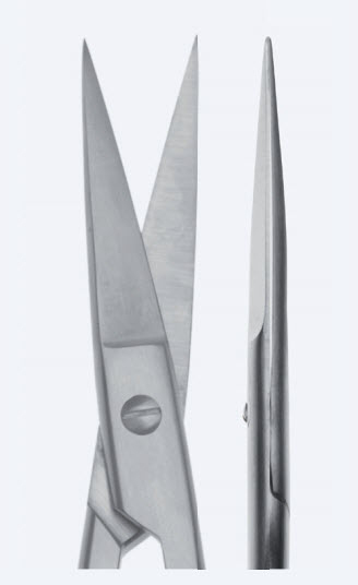 Хірургічні ножиці - це ріжучі інструменти, що складаються з двох лез центрованих по центру. Леза закриваються і матеріал розрізається при змиканні вигнутих кілець на рукояті, куди вставляються пальці. У ріжучій тканині кращим методом є утримування лопатей у щільно закритому положенні та підштовхування інструменту вздовж тканини. Ножиці є незамінними інструментами при провидінні будь-якої операції, а також зняття пов'язки, зняття швів, гіпсу.