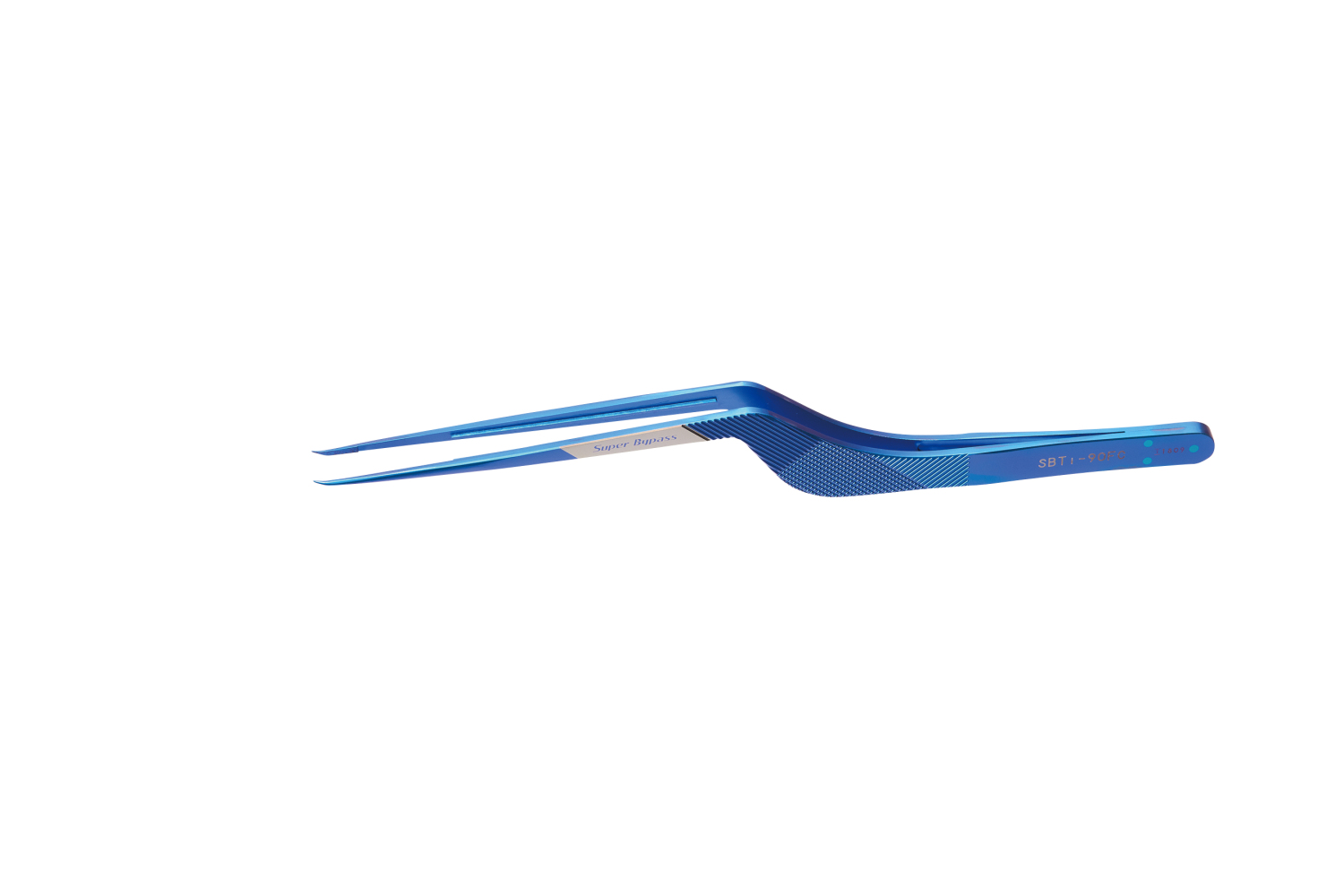 Пінцет мікрохірургічний титановий Super Bypass, довжина 195мм, робоча довжина 90мм, байонетний, вигнуті кінчики 10мм SBTi-90FC