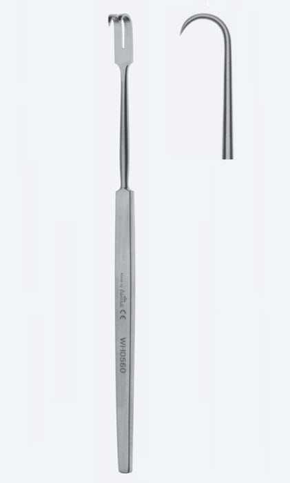 Ретрактор (ранорозширювач) для рани та для трахеї, довжина 165мм, вигнутий, гострий, 1 зубець WH0550