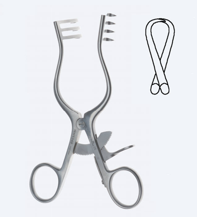Ретрактор (ранорозширювач), що самоутримується Weitlaner, довжина 130мм, гострий, 3х4 зубчики WH5340