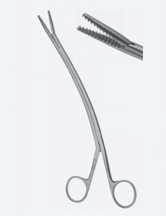 Щипці для введення трубки у грудну клітку, довжина 240мм, вигнуті, кінчик 3,0мм, без кремальєри KL4980