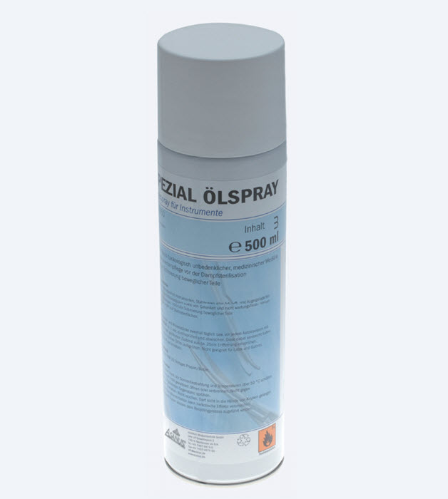 Спеціальний розпилювач забезпечує чудову захисну плівку, яка не впливає на стерилізацію медичних інструментів. Попередньо обробивши інструмент, його можна спрямовувати на стерилізацію. Паропроникність спеціального мастильного спрею дозволяє безпечно та ефективно стерилізувати у паровому стерилізаторі. Спеціальний мастильний спрей покращує збереження матеріалів шляхом оптимального змащування частин, що рухаються, і ефективно захищає від корозії. Завдяки використанню чистої медичної олії, спеціальний мастильний спрей сумісний з металами та токсикологічно безпечний відповідно до медичного та харчового законодавства.