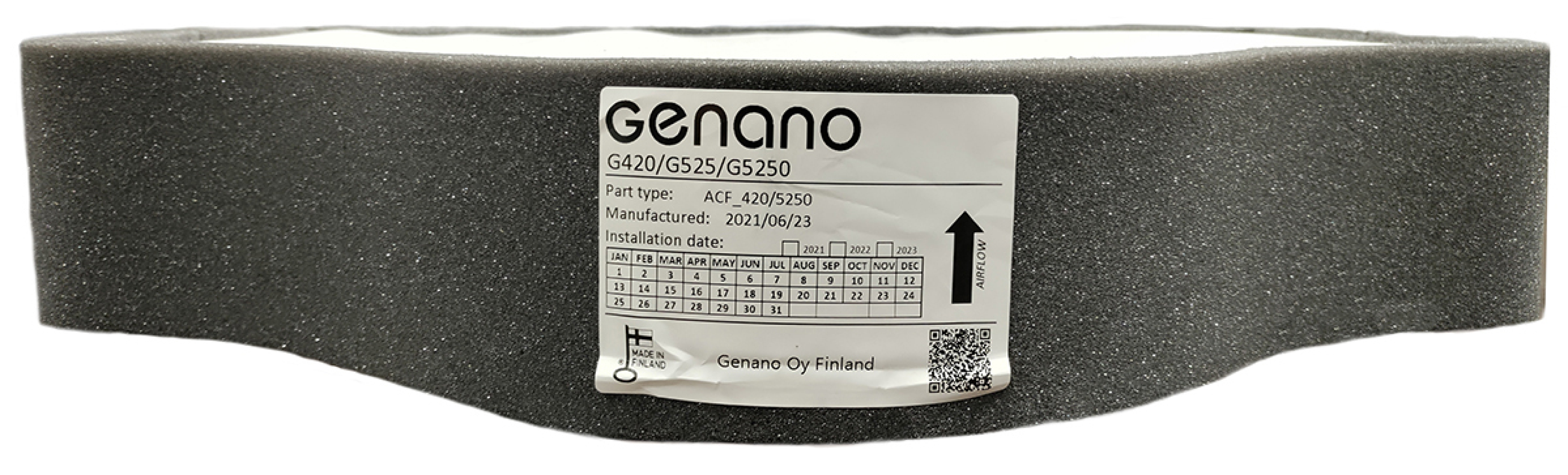 Примітка: для Genano 5250 офіційні матеріали вказують на використання активованого вугілля 60 мм (модуль в комплекті з пристроєм). Для Genano 420 застосовується відповідний варіант пластини для цієї моделі.