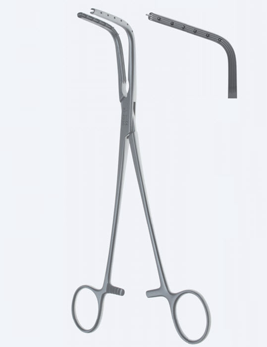 Затискач параметричний Burke модифікований, довжина 250мм, 6 штифтів на брашнах, вигнутий під кутом 75 °, зазубрений, кінчик 3,6 мм KL4930