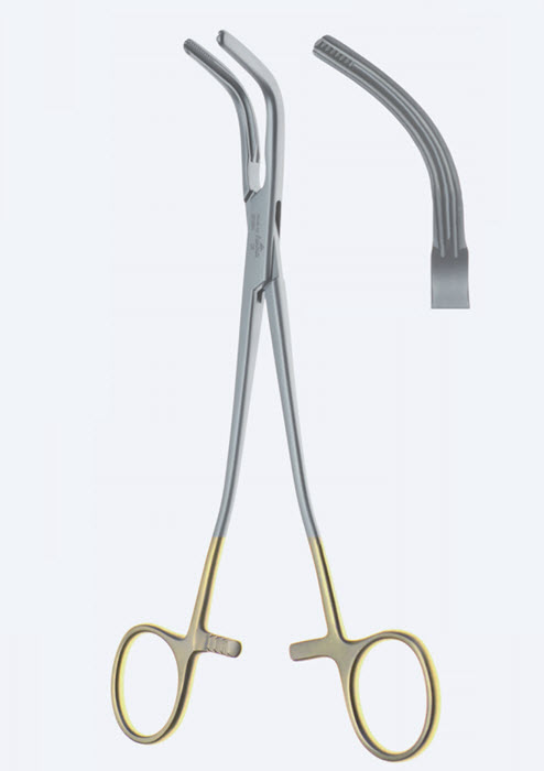 Затискач параметричний, довжина 240мм, сильно вигнутий, з кремальєрою. Виробник Asanus (Germany).