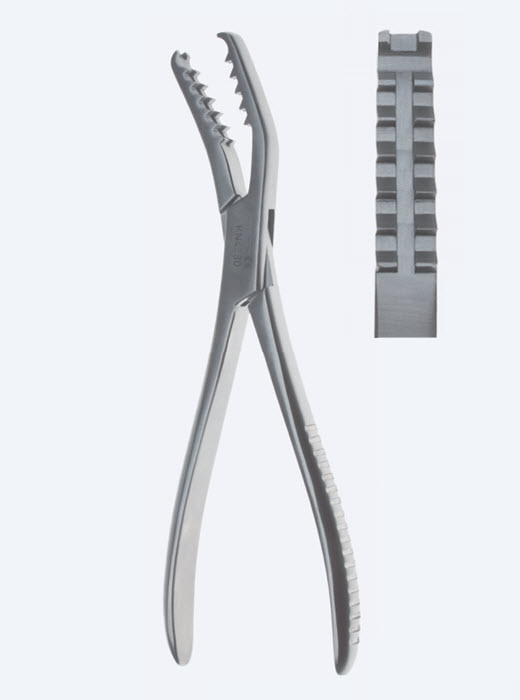 Хирургические щипцы является одним из основных предметов медицинского инструментария, необходимого для оснащения лечебного учреждения любой сферы деятельности (хирургия, микрохирургия, стоматология, гинекология, урология, косметология, ветеринария). Щипцы хирургические или костодержатели, в зависимости от операции хирургического вмешательства, могут очень отличаться по своему виду: быть изогнутыми, прямыми, зауженными, иметь фиксатор, быть без насечек на кончиках браншей. Принцип использования этого инструмента: костодержатели позволяют захватывать, удерживать и фиксировать кости во время хирургических операций. Данный хирургический инструмент является многоразовым, поэтому может проходить любые виды стерилизации перед операционным вмешательством. Щипцы костодержатели для костей и ребер применяются хирургами в костной хирургии при манипуляциях с костями и ребрами.