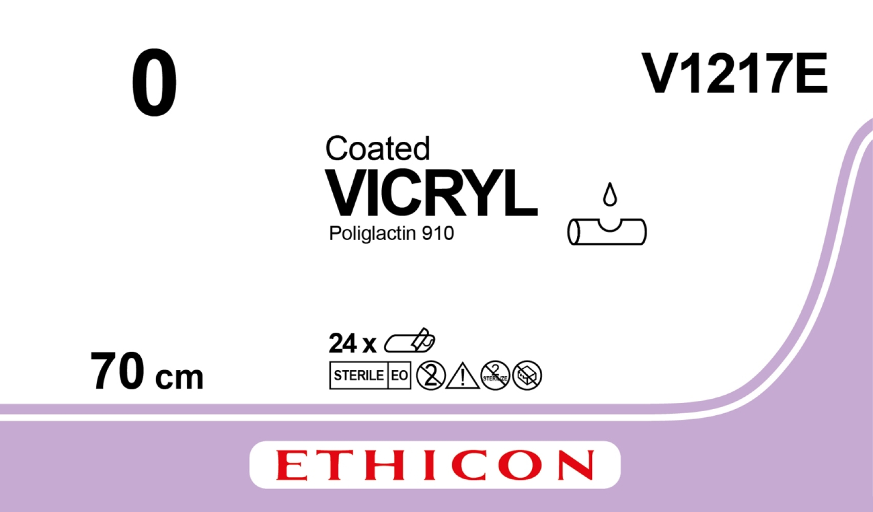 Викрил (Vicryl) 0, 5 шт. по 70см, без иглы, фиолетовая нить. Cинтетический рассасывающийся полифиламентный шовный материал Викрил (Vicryl) Полиглактин 910. Производитель: ETHICON part of the JOHNSON&JOHNSON family of companies.